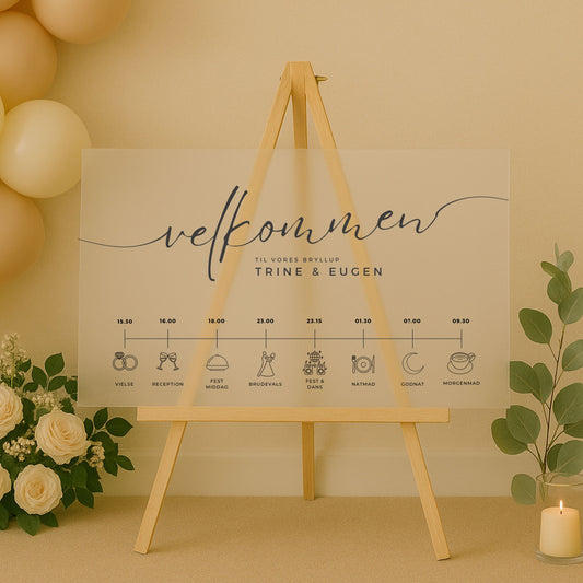 Et perfekt skilt til at byde ens gæster velkommen til jeres store dag! Skriv i...