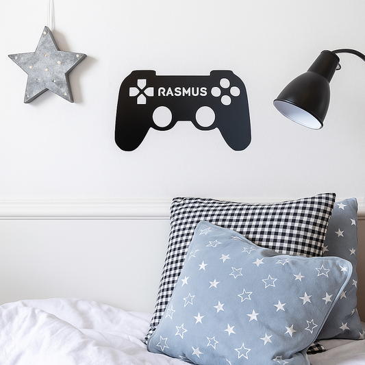 Et super cool controller skilt til børneværelset, men udskåret navn. Teksten er naturligvis valgfri, og...