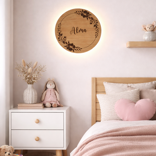 Vores lamper er lavet i et stilrent og børnevenligt design, der passer perfekt ind i moderne børneværelser. Den personlige gravering gør den til en oplagt gave til barnedåb, fødselsdag eller babyshower.