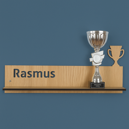 En sej hylde i vores fine egetræ. Du kan tilføje navn eller anden tekst,...
