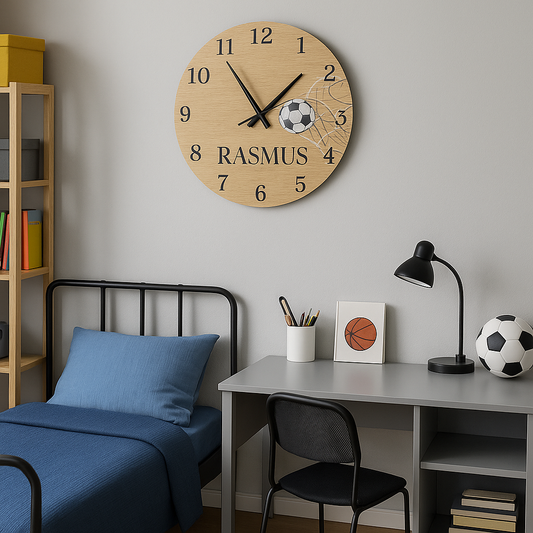 Skab en hyggelig og personlig atmosfære på børneværelset med dette smukke egetræsur på 30 cm.Uret...