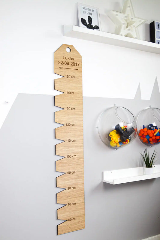 Gør din børns vækstspurt til en festlig begivenhed med vores skønne højdemåler i egetræ med...