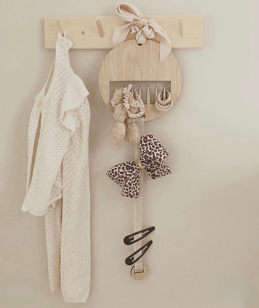 Vores praktiske hårspænde holder i smukt egetræ hjælper dig med at organisere og vise dine...