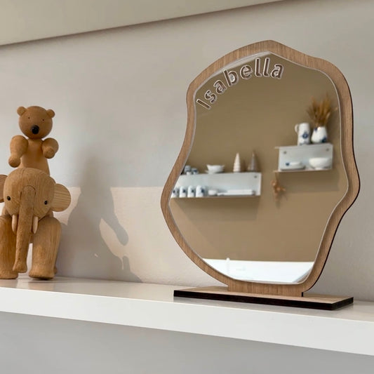 Tilføj en unik charme og funktionalitet til dit rum med vores smukke asymmetriske spejl, fremstillet...