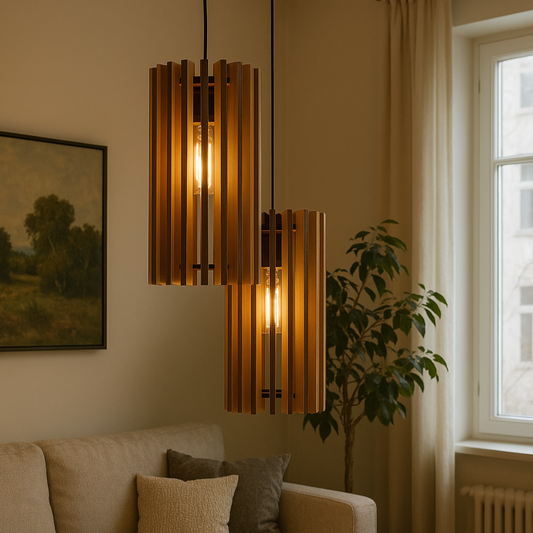 Denne moderne loftlampe i træ kombinerer skandinavisk minimalisme med naturlig varme. Lampens unikke design med...