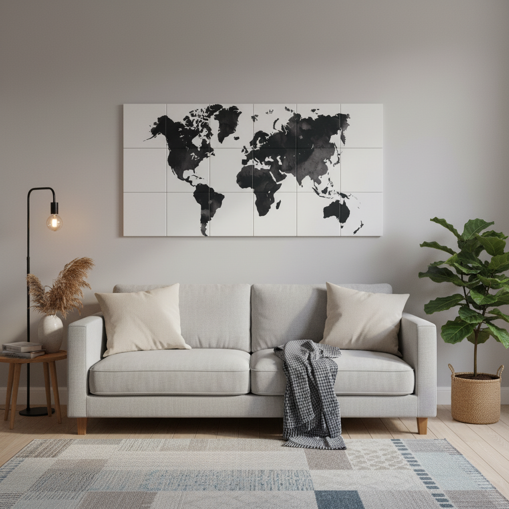 Vores akustikplader med verdenskort er mere end blot lydreducerende elementer; de er kunstværker i sig selv. Med deres elegante vandfarveeffekt og verdensomspændende design passer de perfekt ind i enhver indretning, uanset om det er i stuen, kontoret eller soveværelset. Skab en stilfuld og rolig atmosfære, hvor du kan nyde både æstetik og akustik.