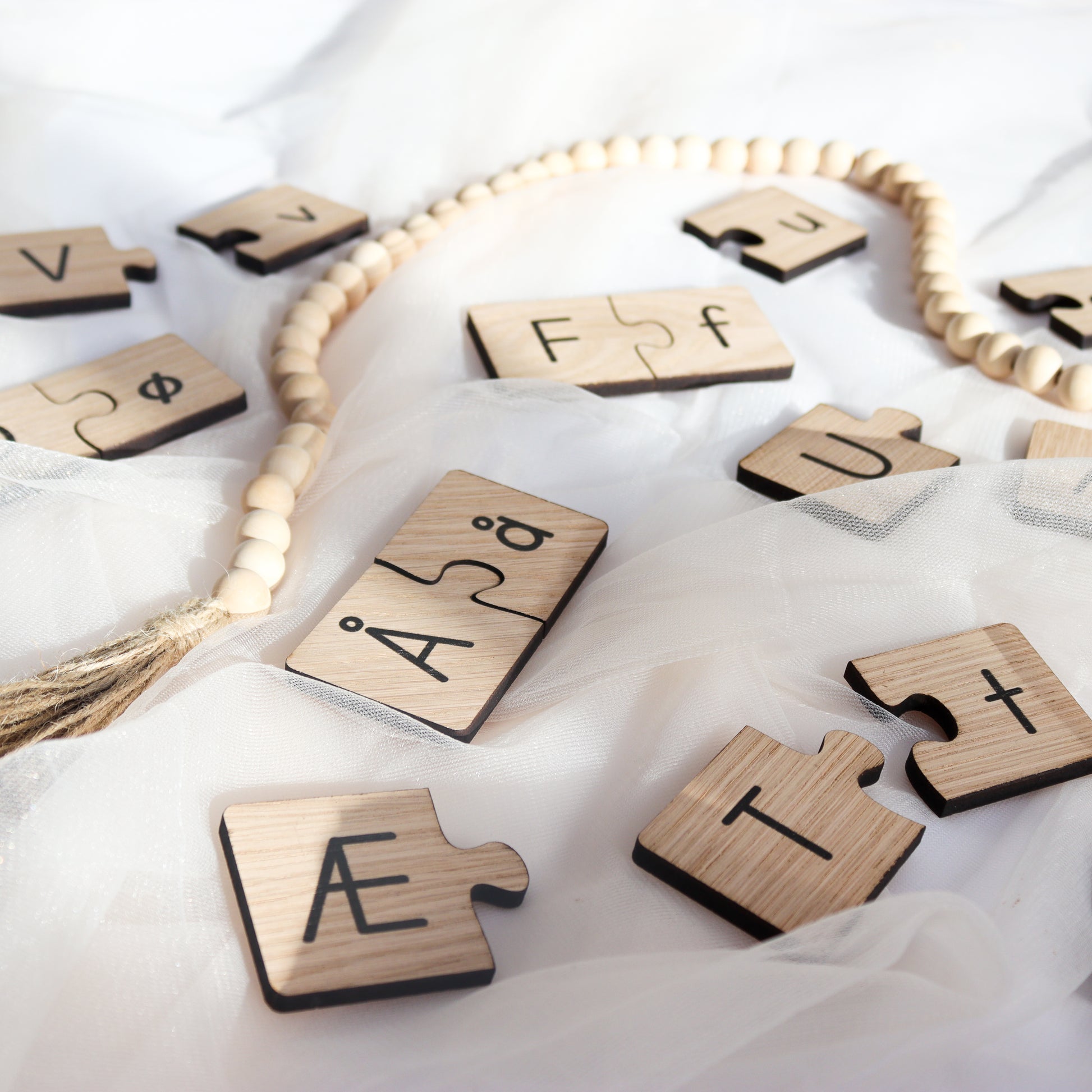 Alfabet puslespil - Egetræ - 10x5 cm.