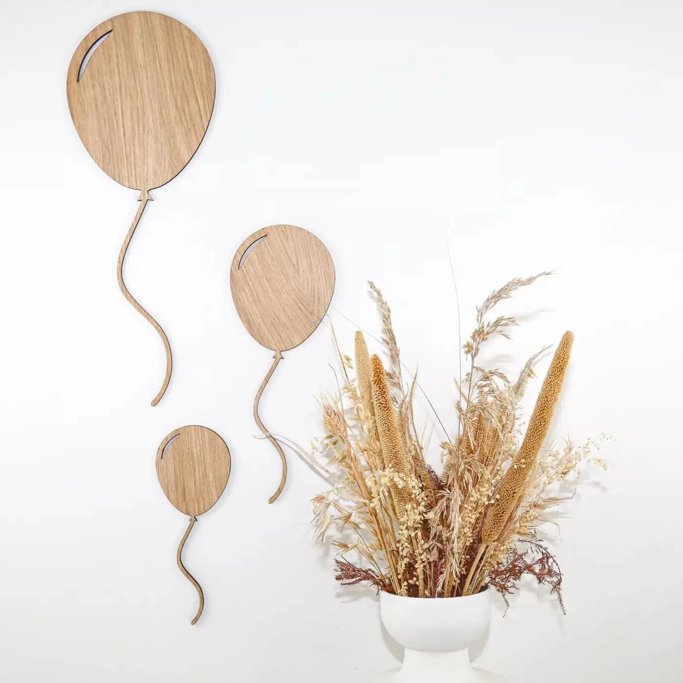 Giv børneværelset et magisk løft med vores smukke og fantasifulde balloner. Vælg mellem en enkelt ballon, et par stykker eller hele sættet med tre balloner for at skabe en sammenhængende og legende dekoration. Vores balloner fås i to stilfulde materialer: elegant egetræ eller moderne sort akryl.