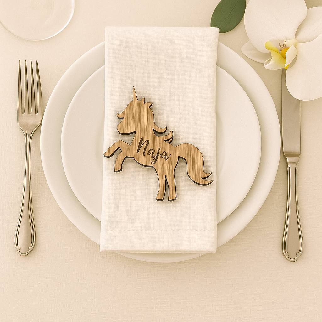 Giv din begivenhed et strejf af magi med vores enhjørning bordkort, skåret i ægte egetræ eller flot akryl. Disse charmerende bordkort er det perfekte valg til enhver lejlighed, hvor du ønsker at tilføje en følelse af eventyr og fortryllelse til din borddækning.