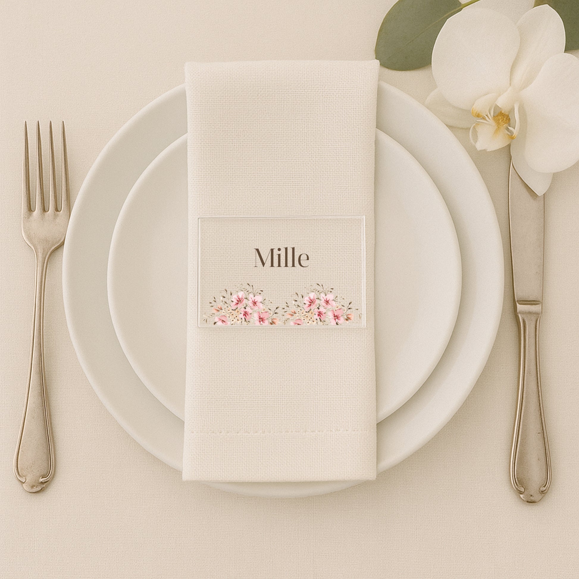 Gør din næste begivenhed eller middagsselskab uforglemmelig med vores smukt designede rundt bordkort i akryl med lyserøde blomster. Disse elegante bordkort tilføjer en naturlig og fortryllende touch til din borddækning og er det perfekte valg for dem, der ønsker at skabe en indbydende atmosfære med et strejf af elegance.