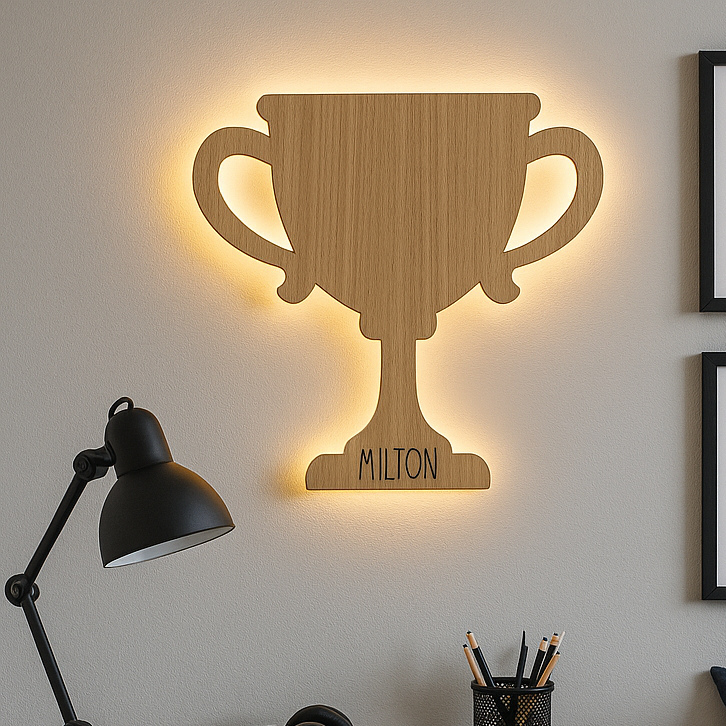 Udskåret børnelampe i Egetræ – Med Push-funktion og Genopladning