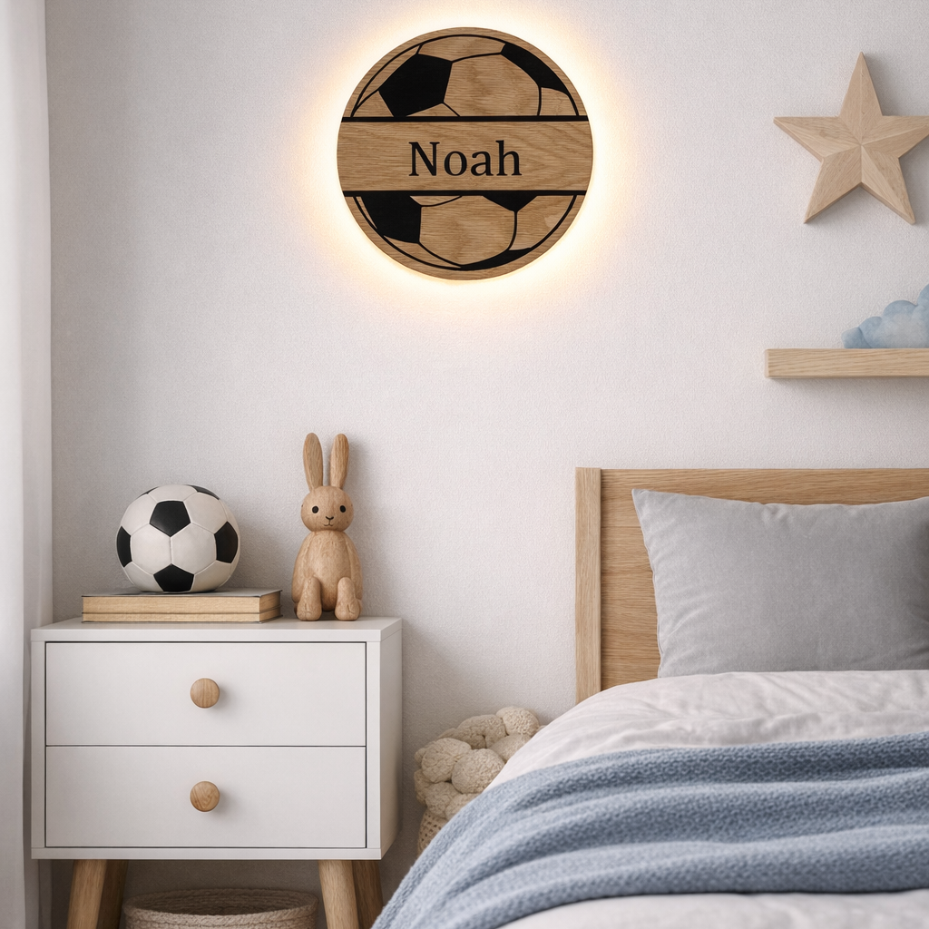 Børnelampe - Fodbold med navn - Ø26 cm
