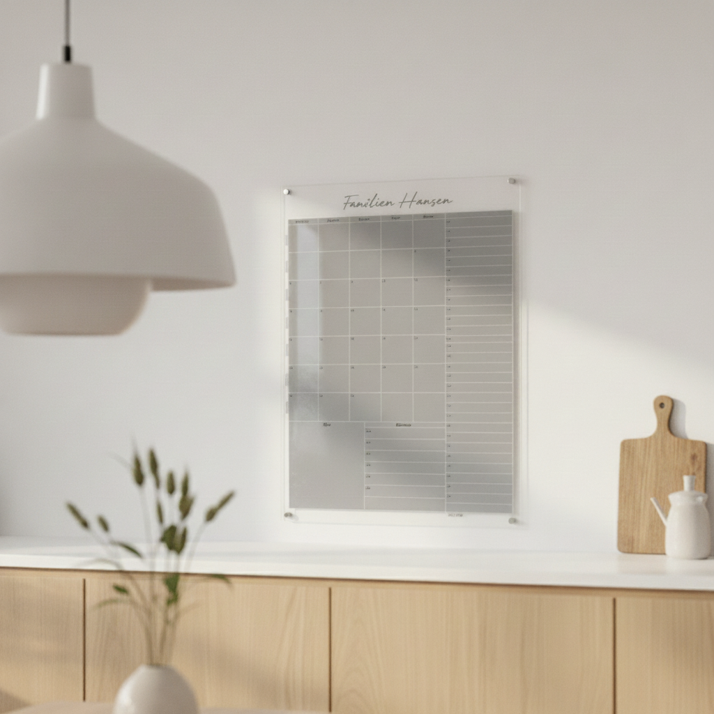 Ønsker du at tilføje et personligt præg til din families planlægning og samtidig have en flot vægdekoration? Vores personlige familiekalender på plexiglas er den ultimative løsning. Denne kalender er mere end blot en tidslinje - den er skræddersyet til din families unikke behov og stil.