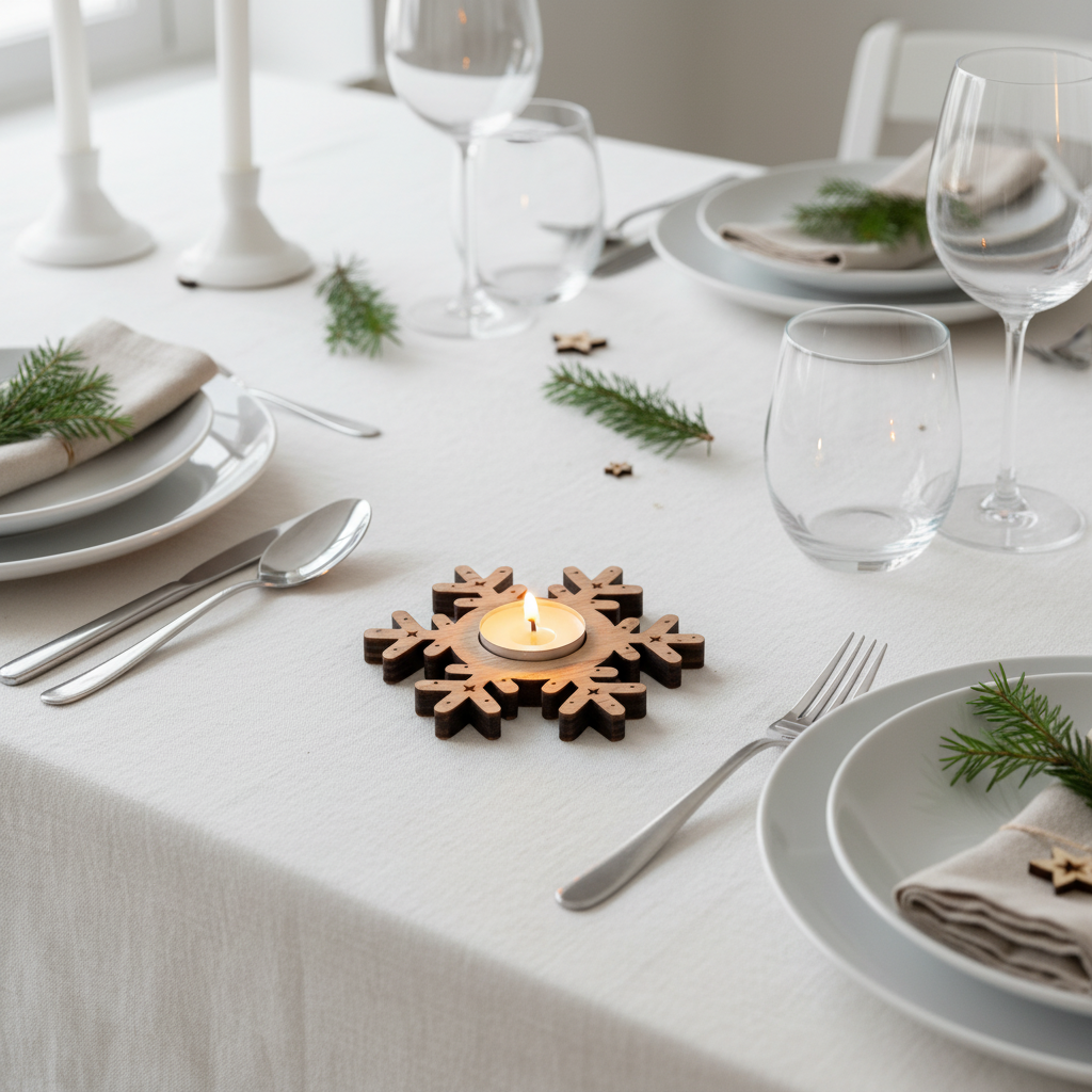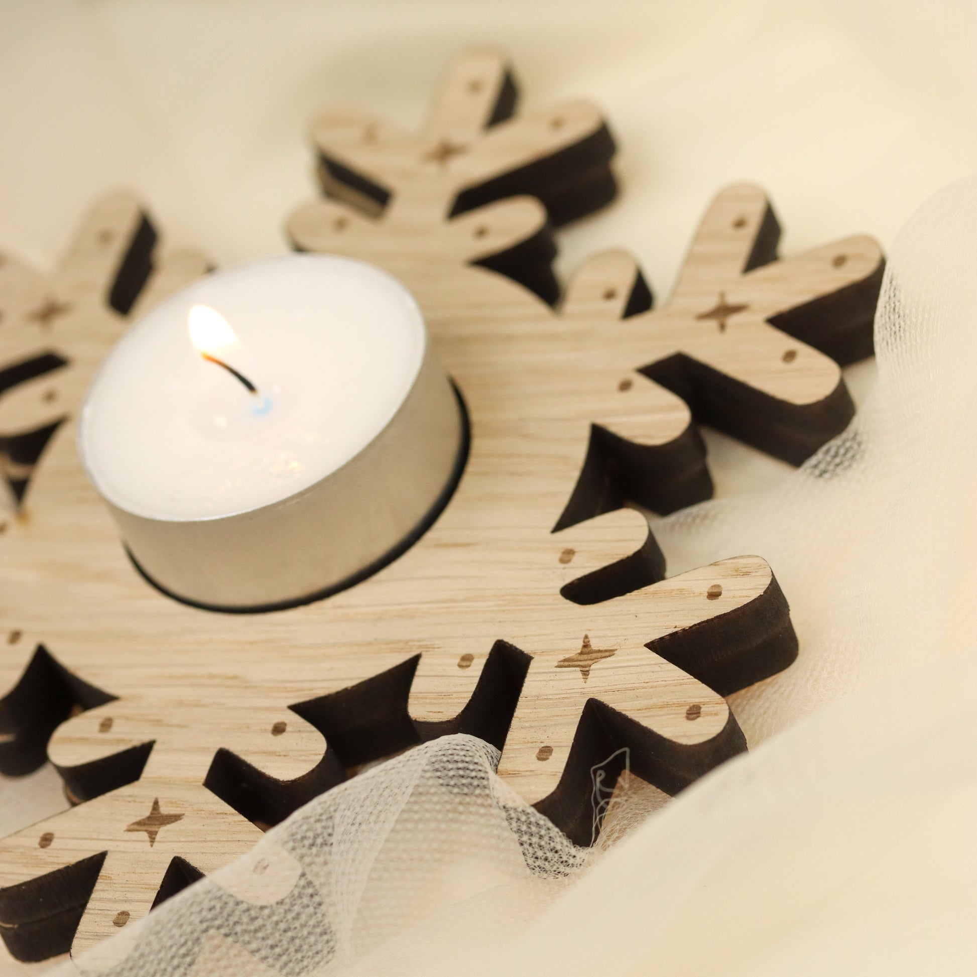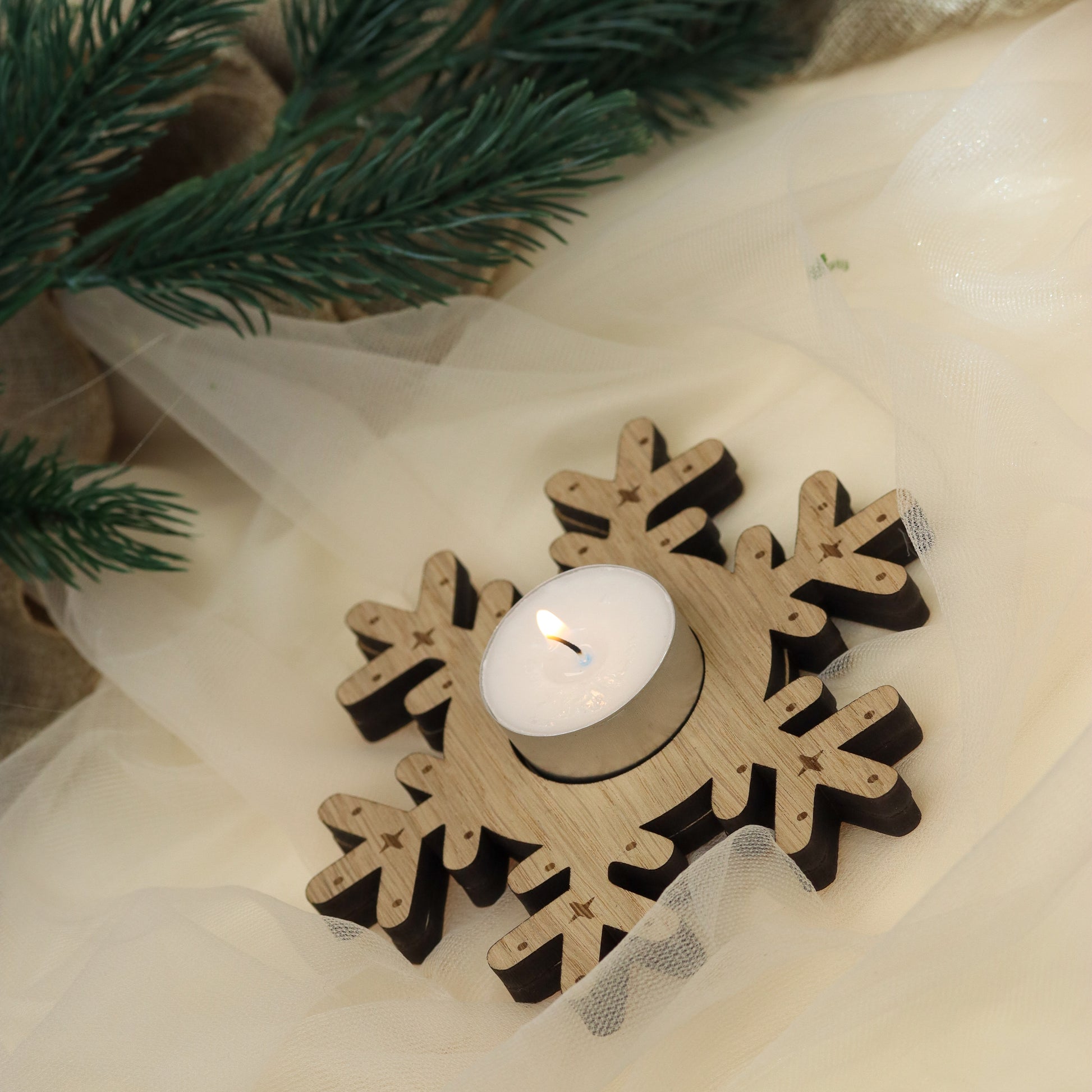 Skab en hyggelig og naturlig stemning med denne smukke fyrfadsstage i egetræ, formet som et elegant snefnug. Stagen er fremstillet af egetræ og måler 13x11 cm, hvilket gør den perfekt som et dekorativt element på julebordet, i vindueskarmen eller som del af en varm vinterdekoration.