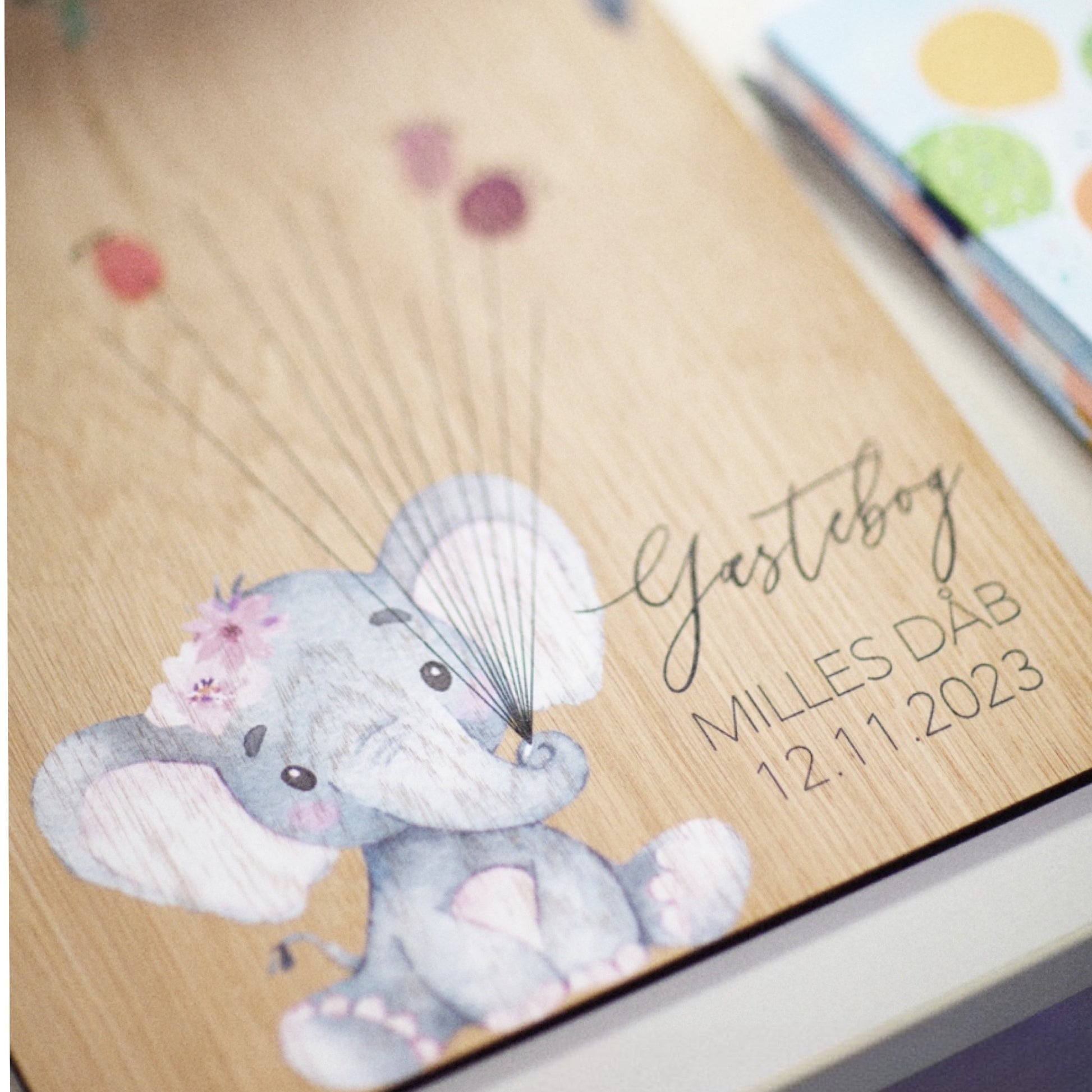 Gæstebog - Elefant - Egetræ eller frosted akryl - 33x24 cm