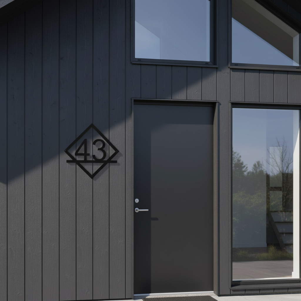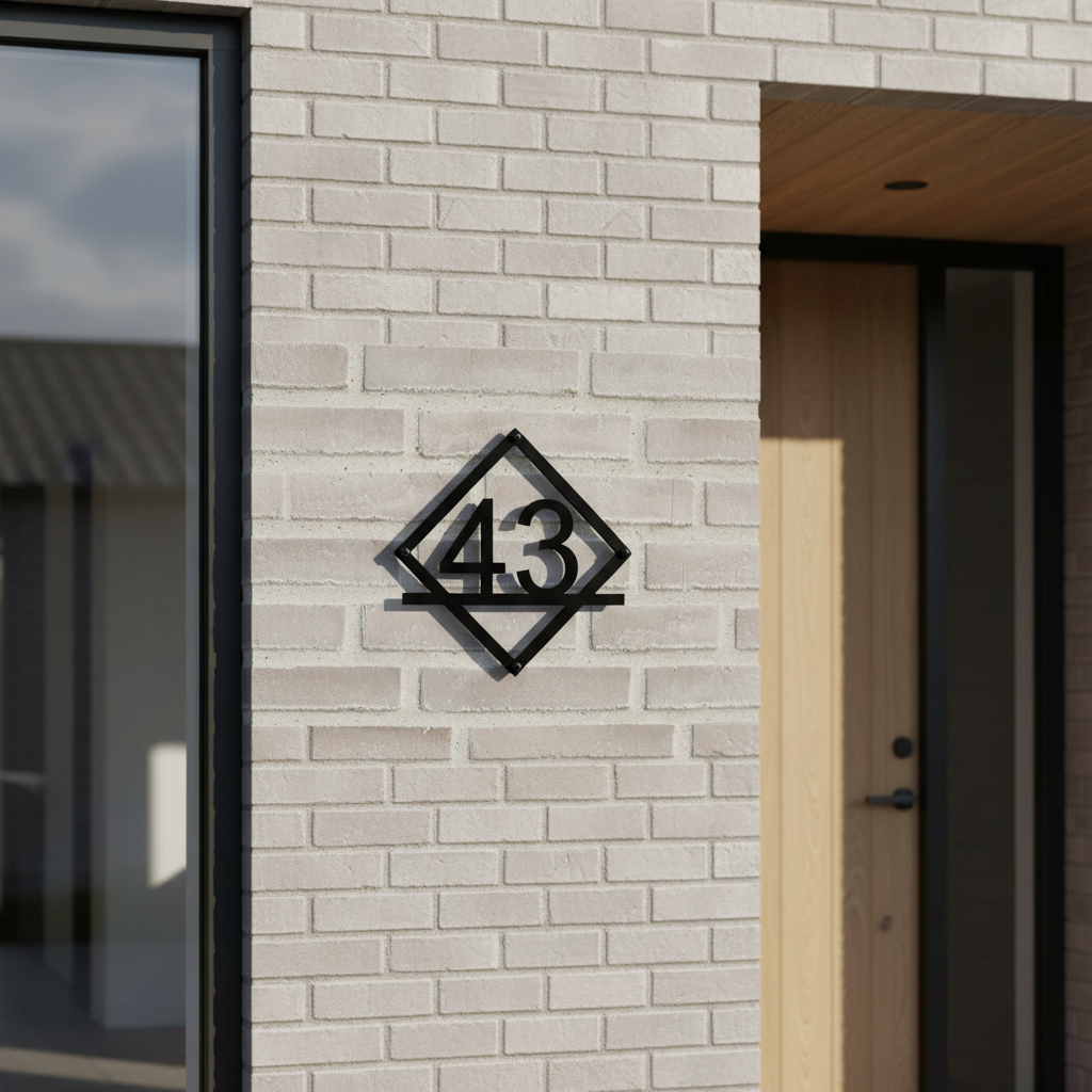 Det firkantede husnummer i akryl tilføjer et unikt præg til din bolig.