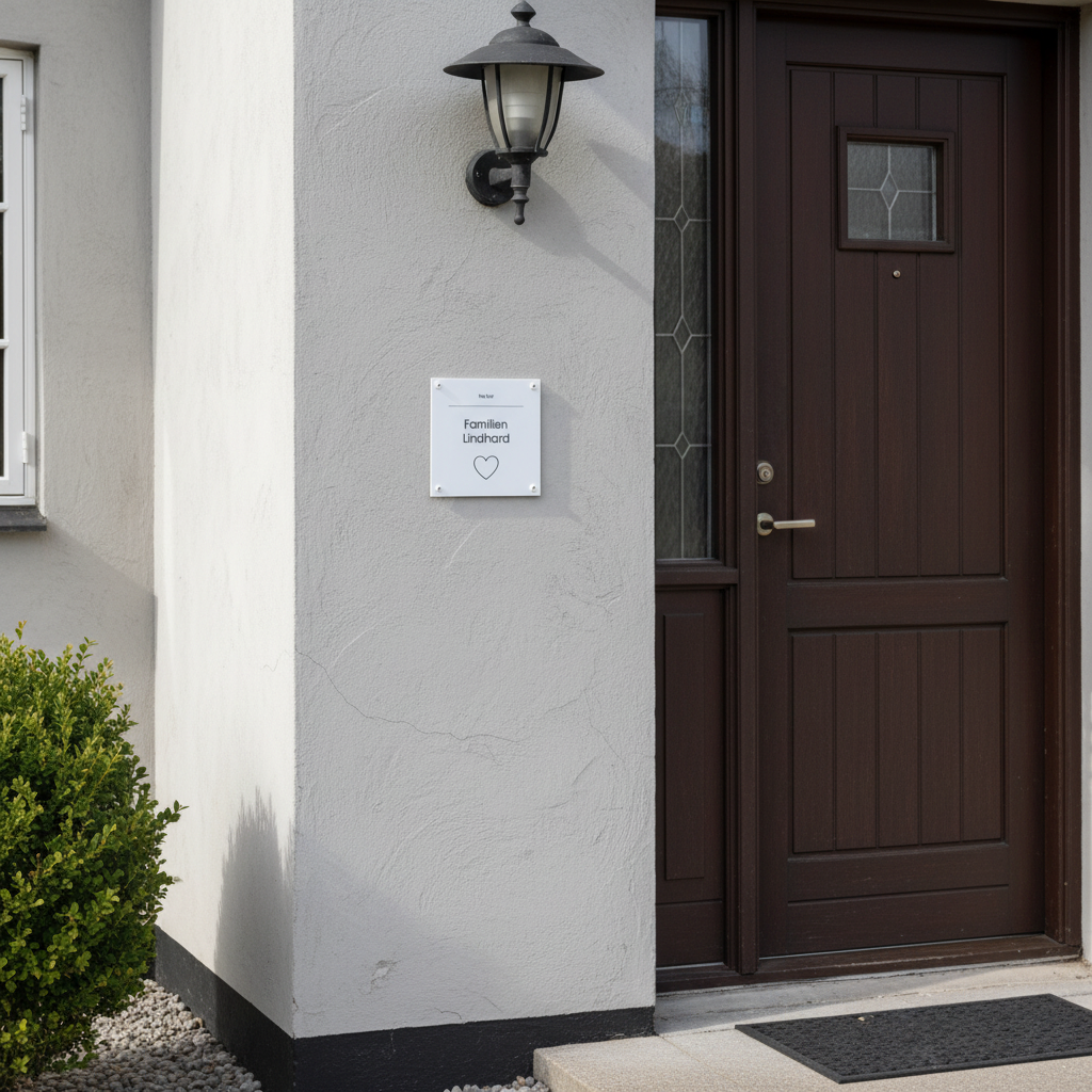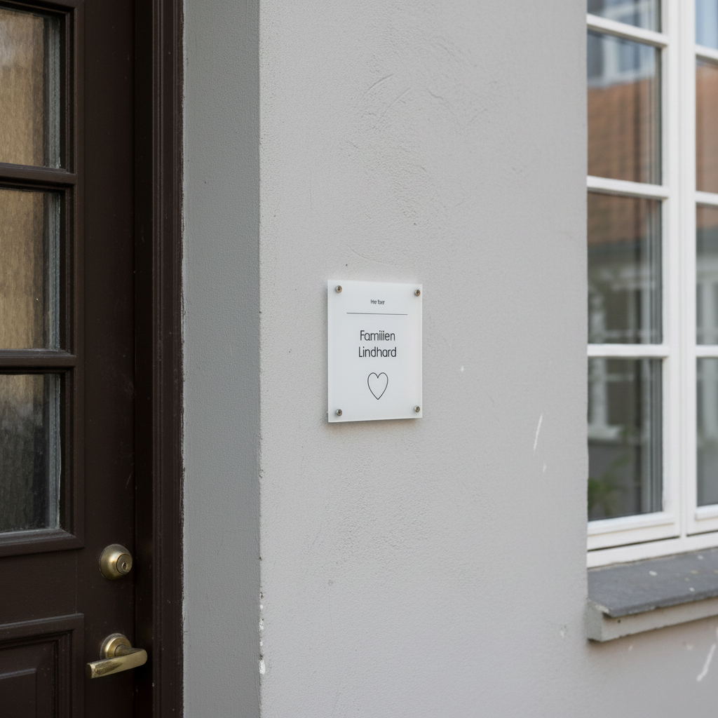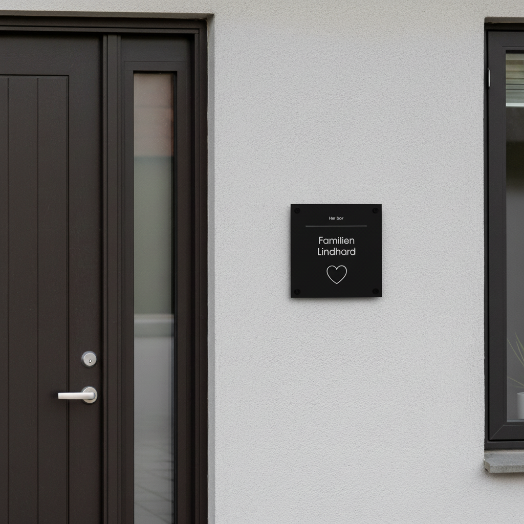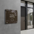 Fremhæv din families navn og tilføj et strejf af elegance til din hjemmefront med vores personlige husskilt i akryl.