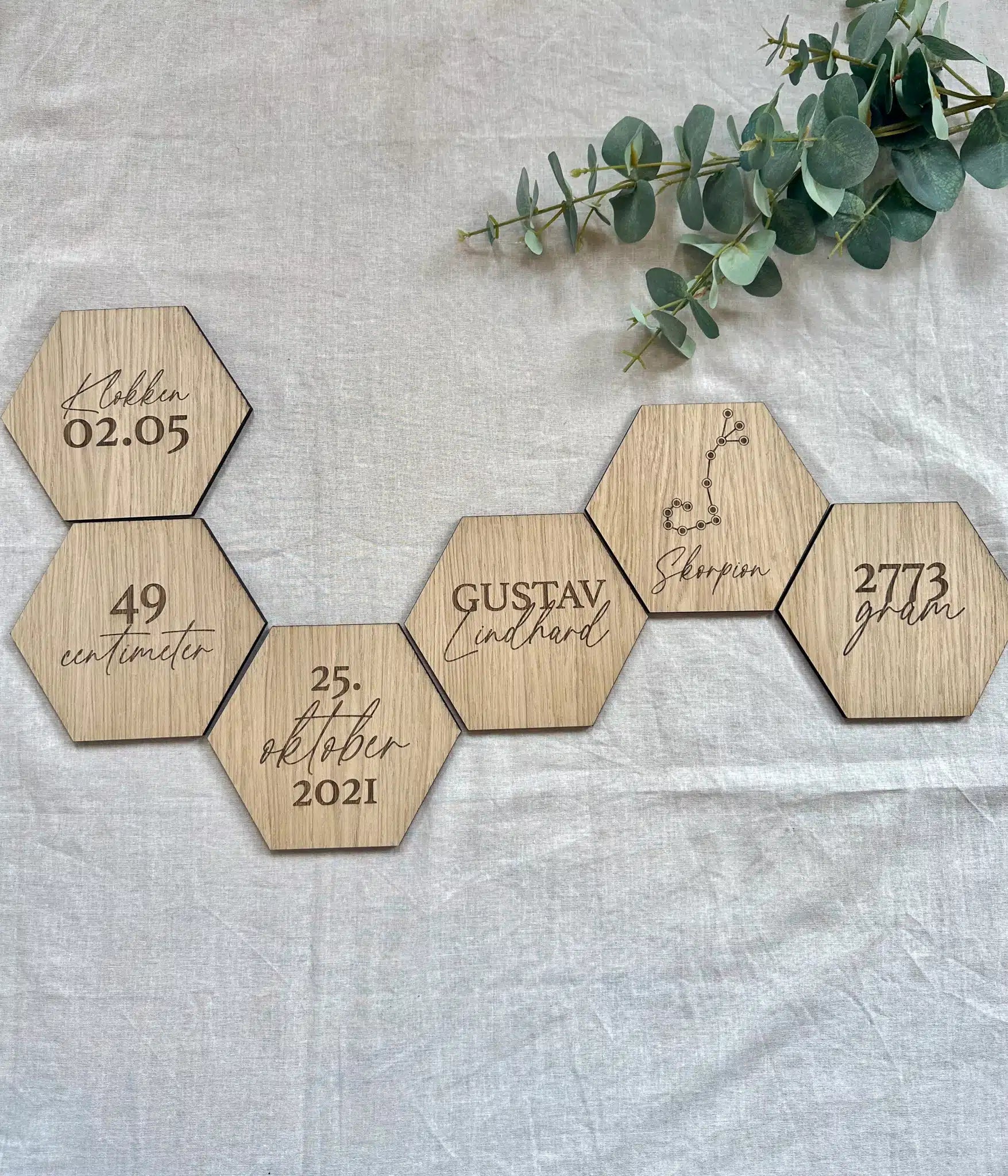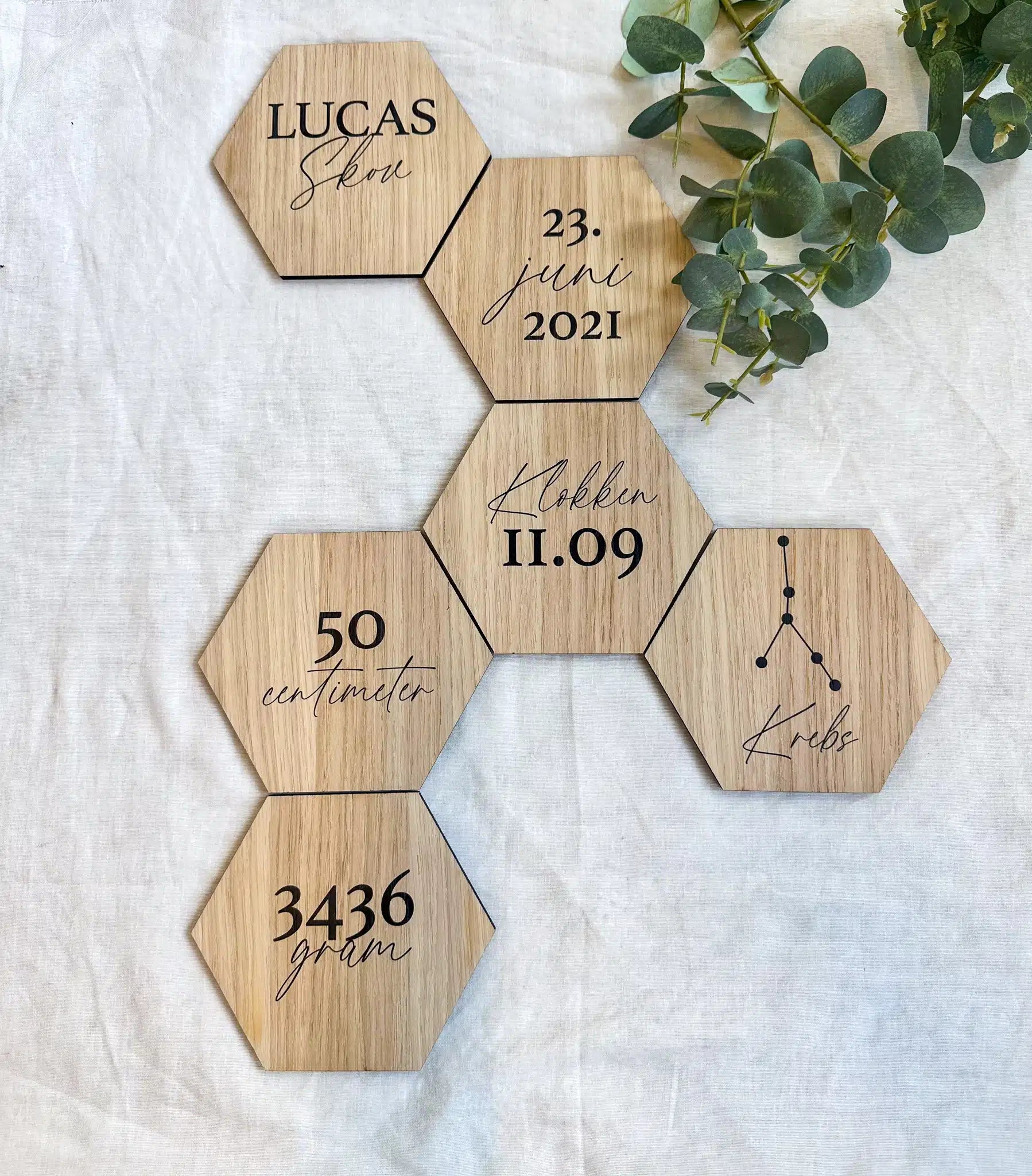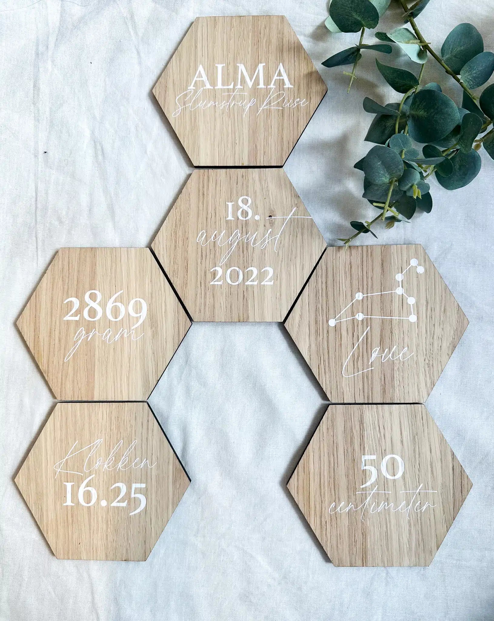De fineste mindeplader med dit barns navn, dato, tidspunkt, længde, vægt og stjernetegn!