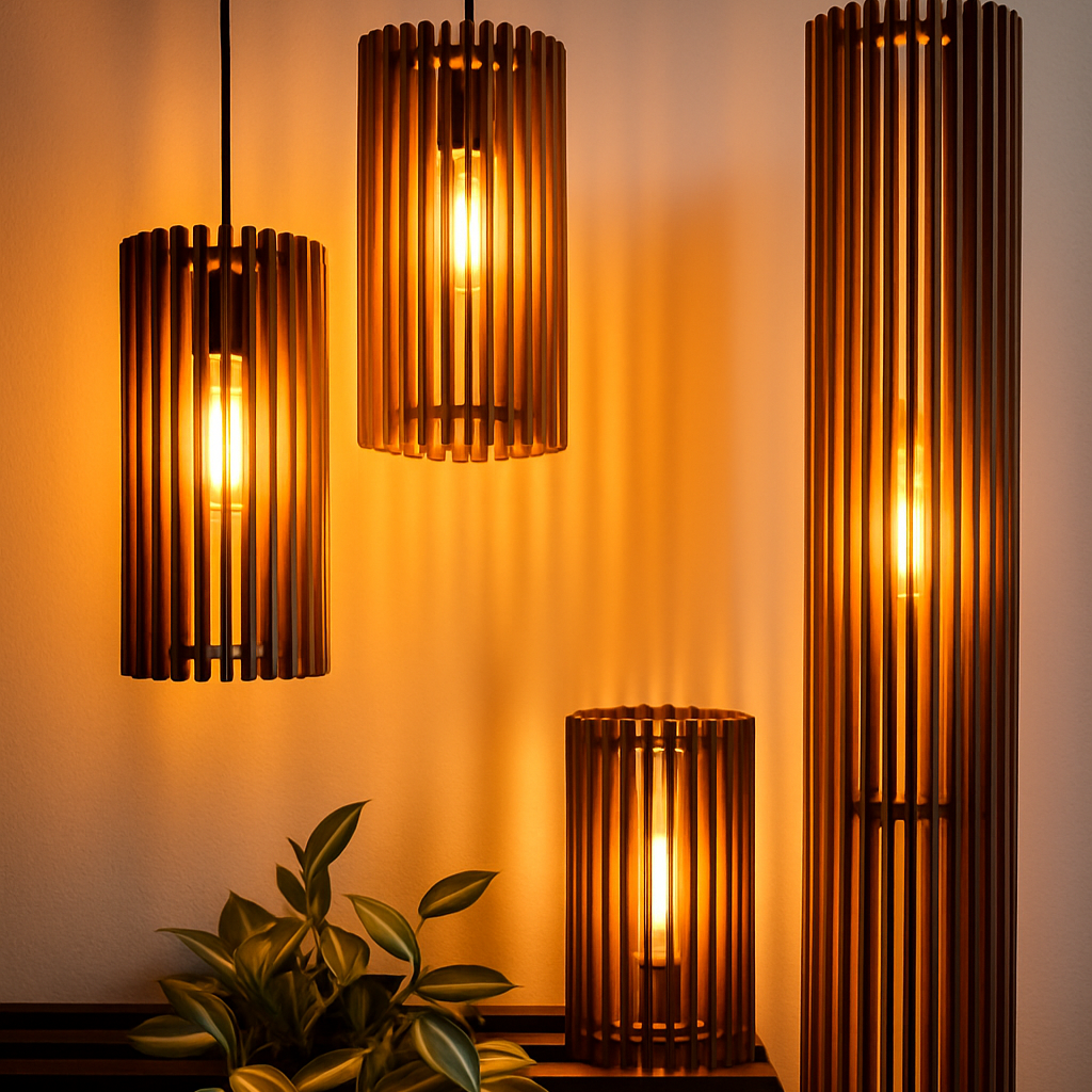 Med denne pakkeløsning får du et komplet sæt af vores populære Pandel-lamper – håndlavet i laserskåret egetræ og samlet med omhu i Viborg. Du får: