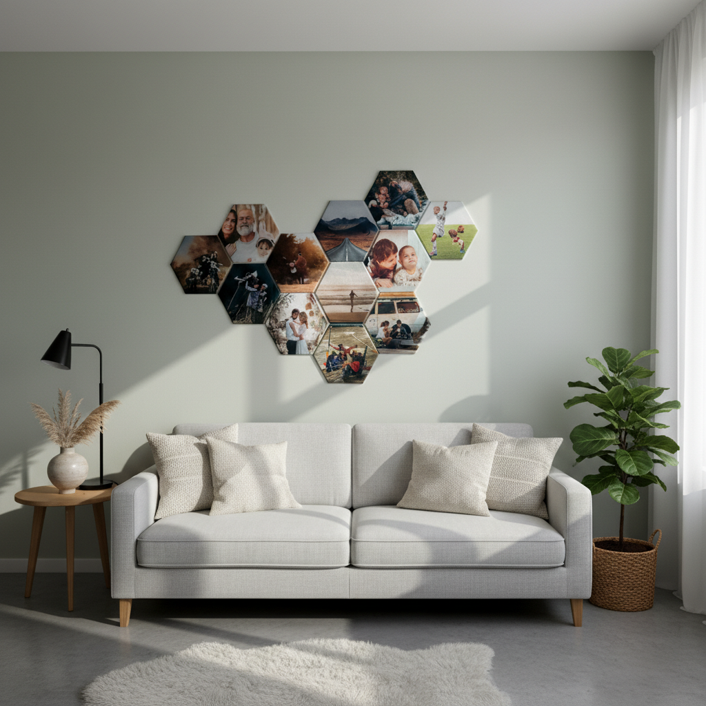 Sekskantede akustikplader med personlig billede - 30x26 cm.