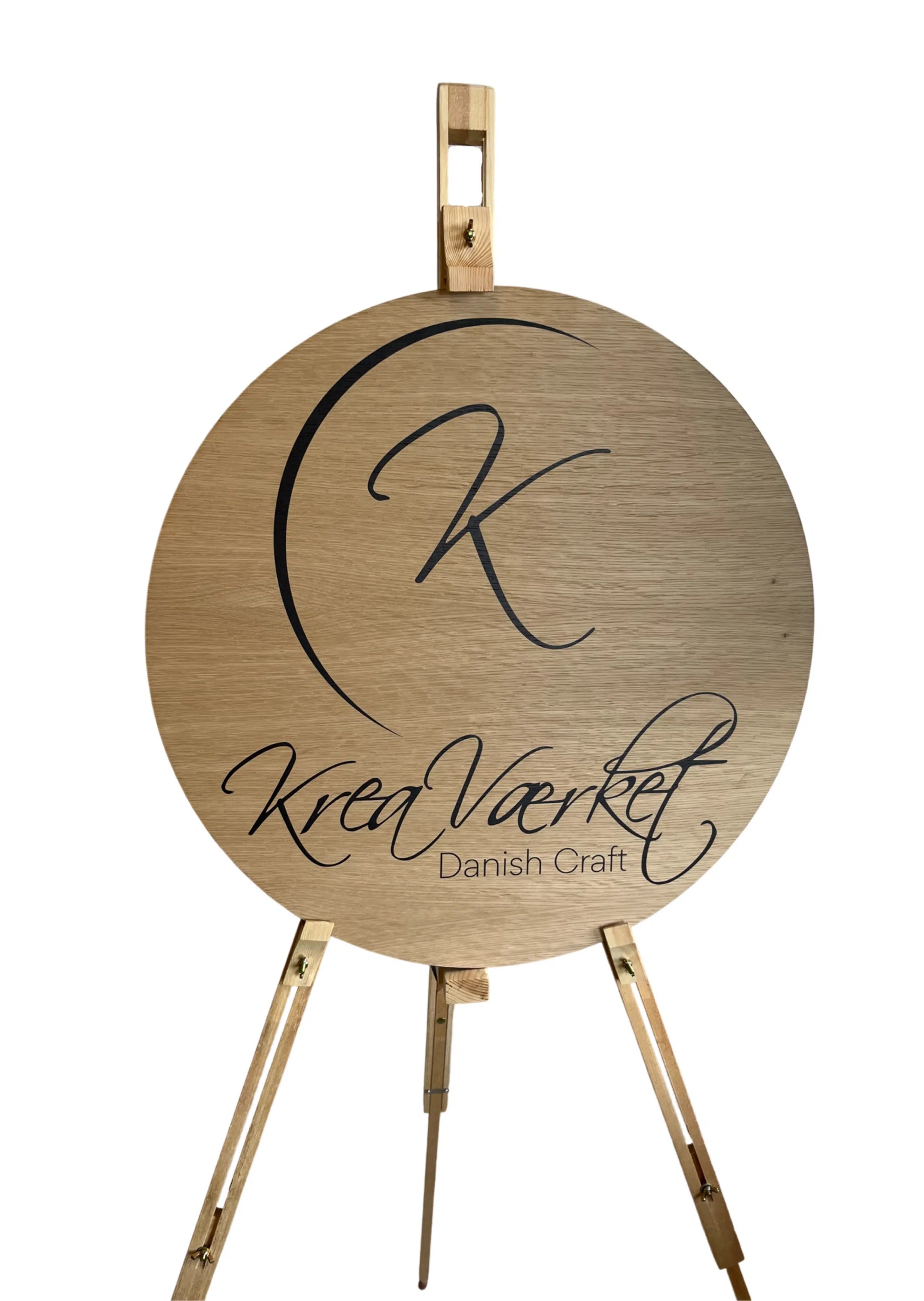 Vores fine staffeli i lys bøg. Højden kan justeres med en højde imellem 130 og 180 cm. Max højde for skilt er 70 cm