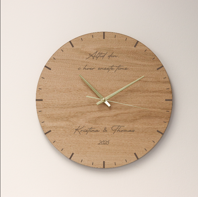 Dyk ned i en verden af tidløs elegance med vores nye egetræs ur.
