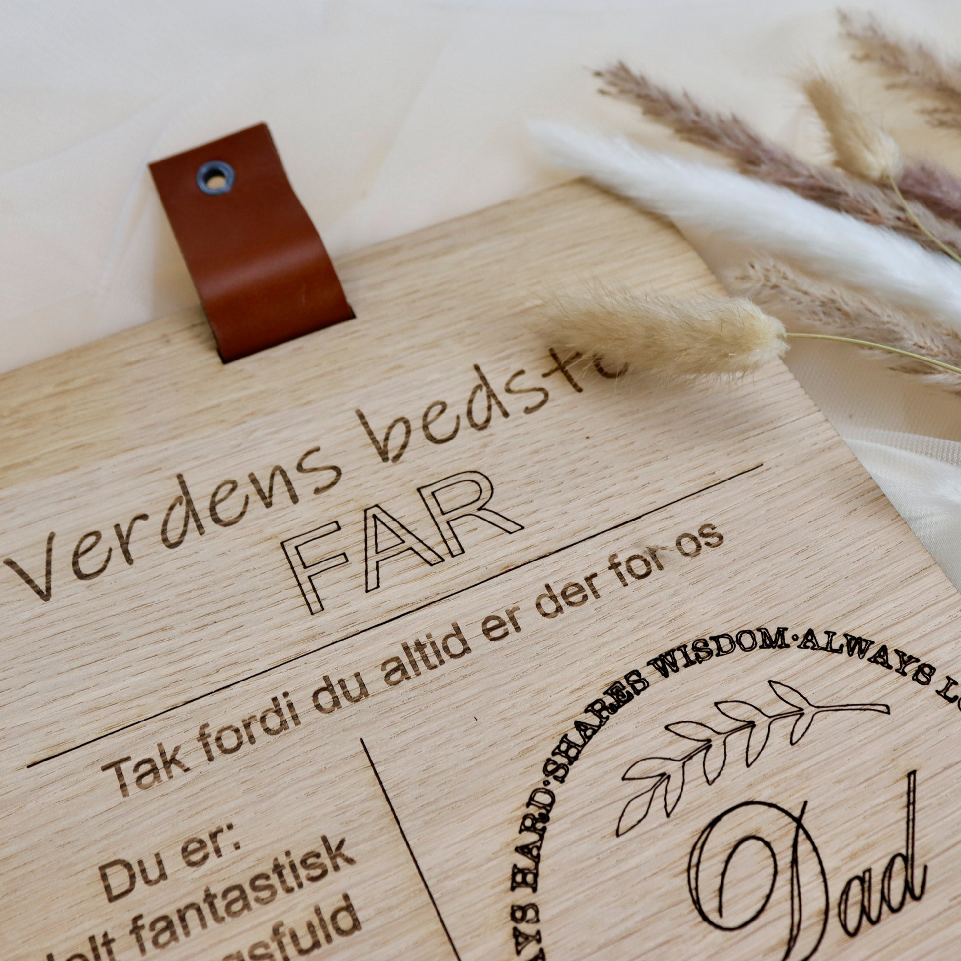 Overrask en du holder af med en smuk og personlig gave, der viser, hvor meget de betyder for dig og dit barn. Vores fine tavle, måler 20x30 cm, og er den perfekte gave til fx bedsteforældre eller dagplejemor, som fortjener anerkendelse for deres kærlige og uundværlige indsats.